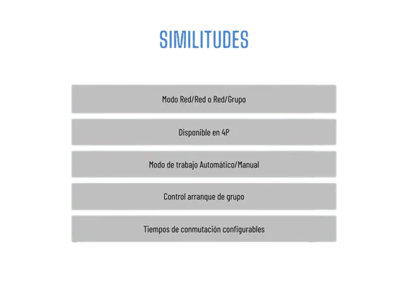 Modo manual protegido: ambas series cuentan con un modo manual protegido que permite realizar la conmutación manualmente en caso de que sea necesario, lo que brinda mayor control y versatilidad en situaciones de emergencia.