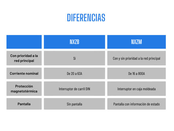 Las series NXZB y NXZM de Chint son conmutadores automáticos diseñados para garantizar la continuidad del suministro eléctrico al conmutar entre dos fuentes de alimentación. A continuación, se muestras las diferencias y similitudes entre ambas series: