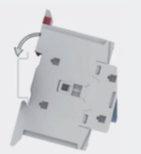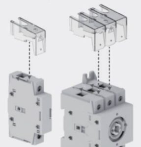 Durante el montaje, el seccionador debe estar en la posición OFF → fijar el carril DIN en la envolvente → instalar el interruptor como se muestra en la siguiente imagen, realizando el cableado del interruptor respetando los pares de apriete.